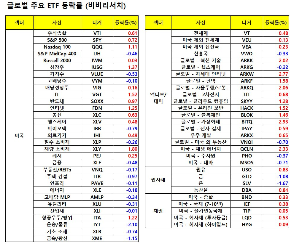 - 빅테크주들이 오르며 나스닥이 상대적으로 강세