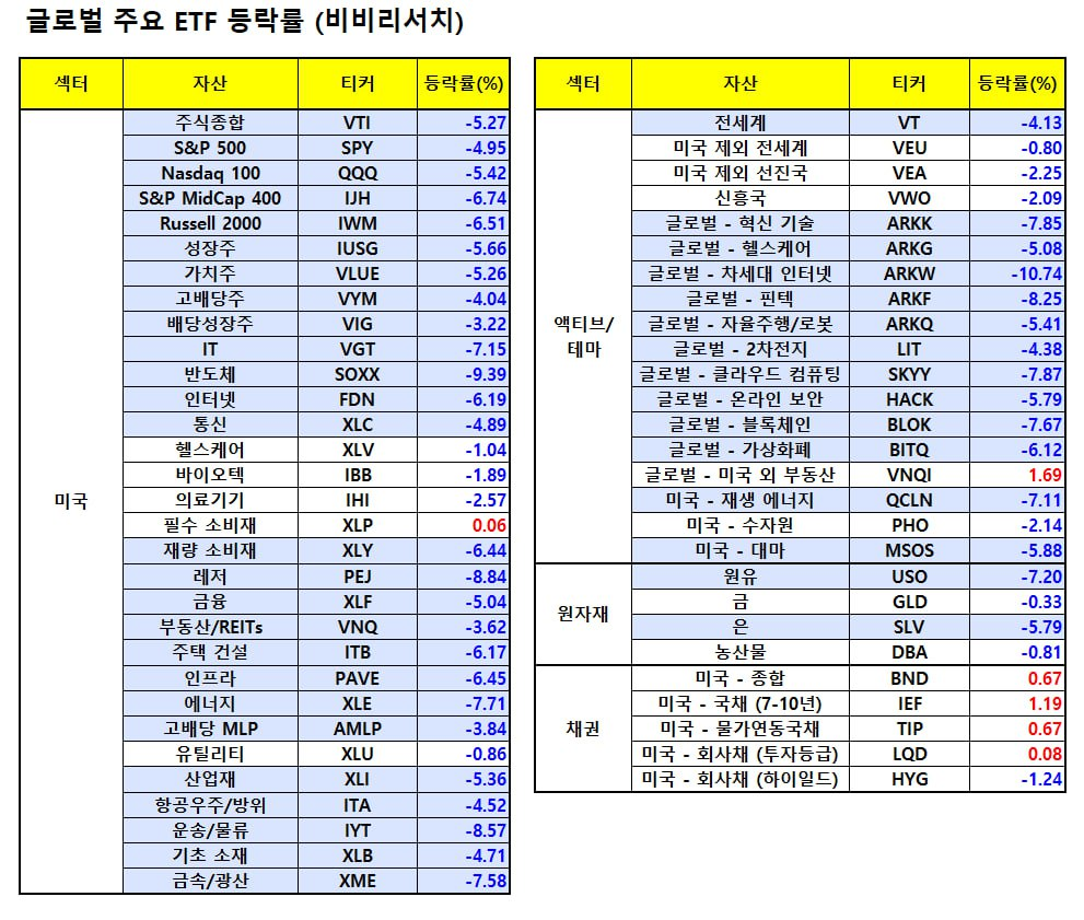 - 여기에 경기 침체될 경우 기업들의 광고도 감소할 것이라는 점이 부각되자 알파벳(-3.92%), 메타 플랫폼(-8.96%) 등도 하락.