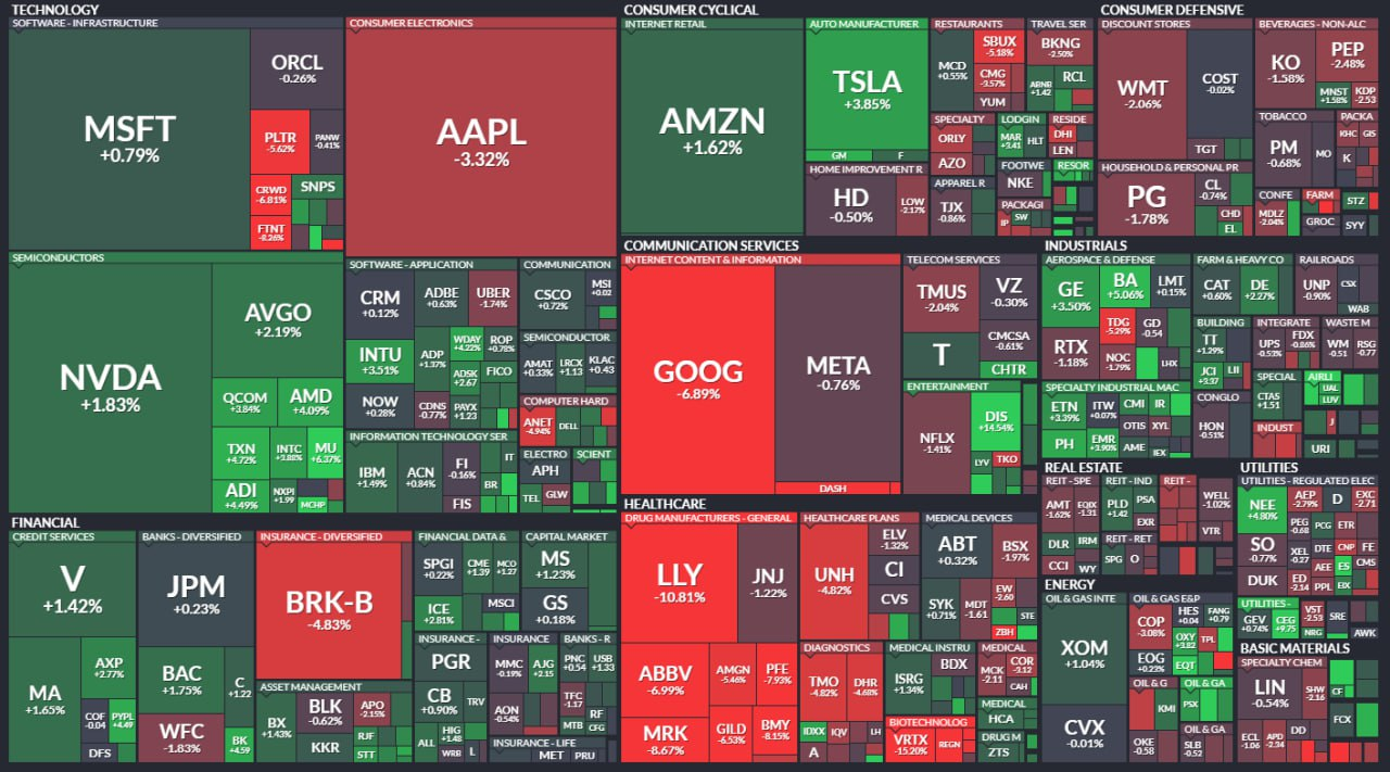 - 소셜미디어 회사인 핀터레스트(+4.88%)는 예상보다 부진한 분기 실적에도 AI 발전과 월간 활성 사용자 증가에 힘입어 강력한 매출 전망을 발표하자 상승.