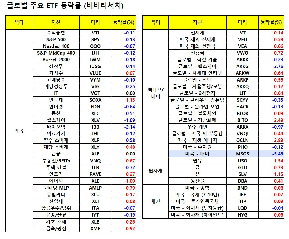 지난밤 글로벌 주요 ETF 동향