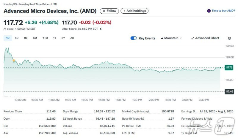 - AMD는 60억 달러 규모의 자사주 매입 계획 승인 소식도 상승 요인.