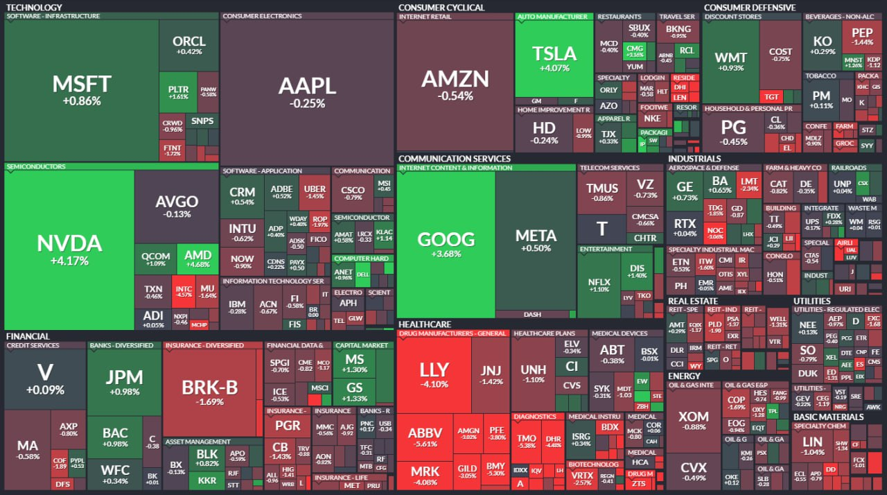 - 엔비디아 $NVDA, 알파벳 $GOOG, 테슬라 $TSLA 가 큰 폭으로 상승하며 나스닥과 S&P 500 3거래일 연속 상승.