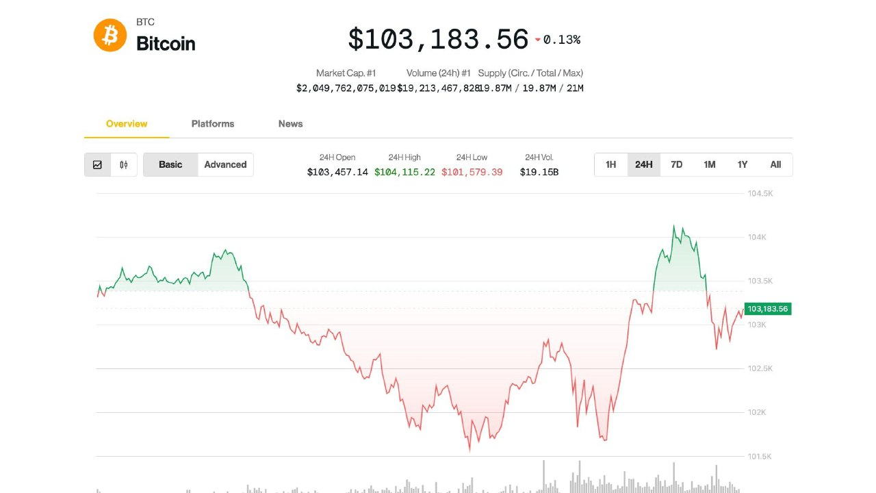 • 비트코인 $103K 유지, XRP 합의 기각에 하락…악재에도 선방한 시장,103,010.93달러에 거래되고 있다