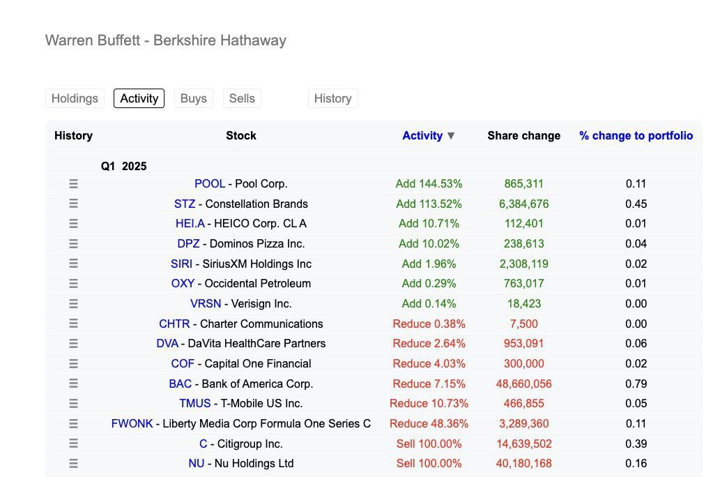 워런 버핏의 버크셔 해서웨이 포트폴리오 업데이트.