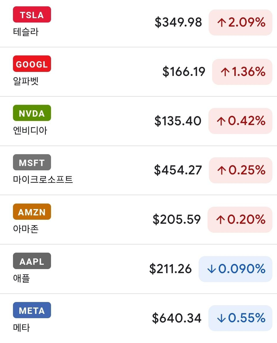 - 매7 전 종목 상승. 테슬라 $TSLA 17%, 엔비디아 $NVDA 16%