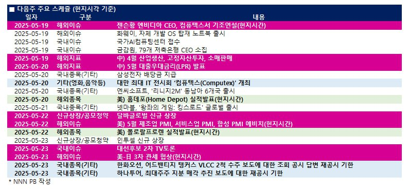 ■ 다음 주 스케쥴 점검 (현지시각 기준)