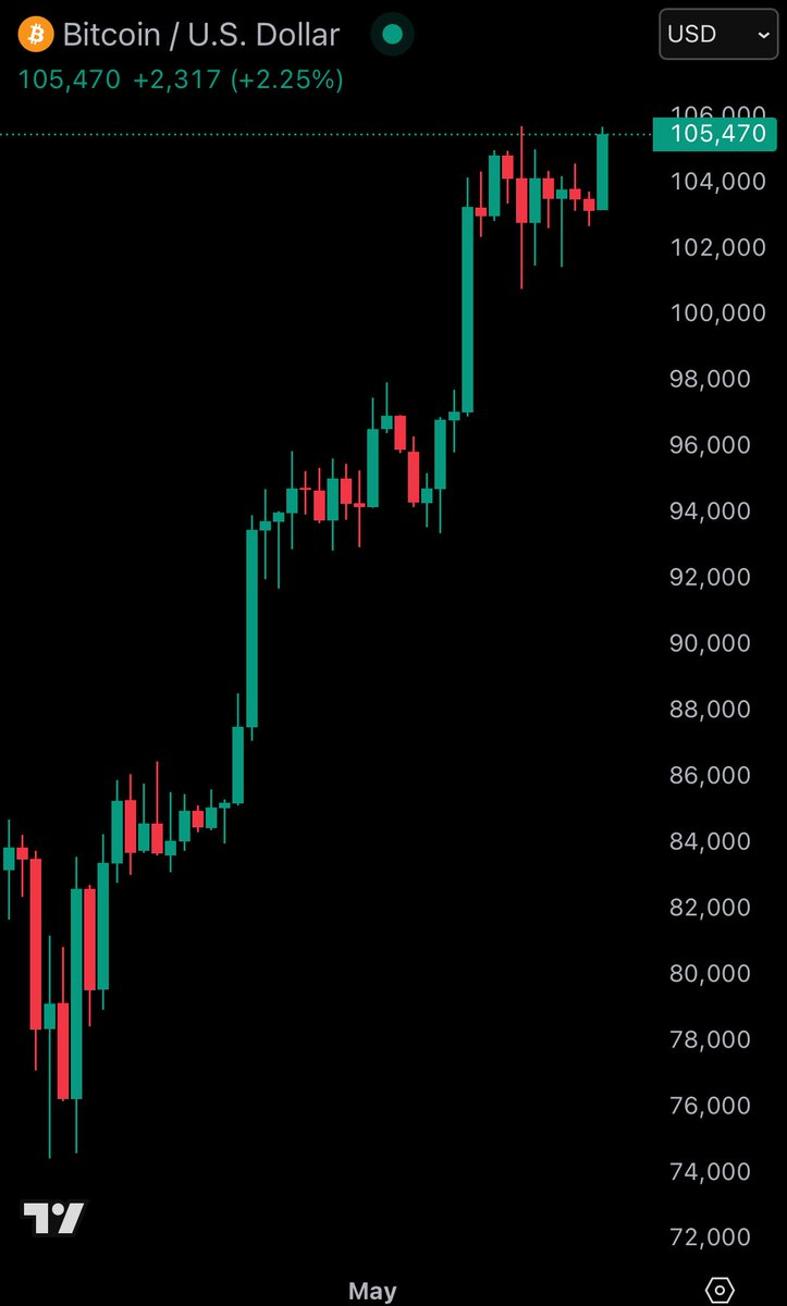 - 시장 불확실성이 커지면서 비트코인 가격이 장중 105,000달러를 돌파해 이전 최고치보다 3.5% 낮은 수준에 도달했습니다.
