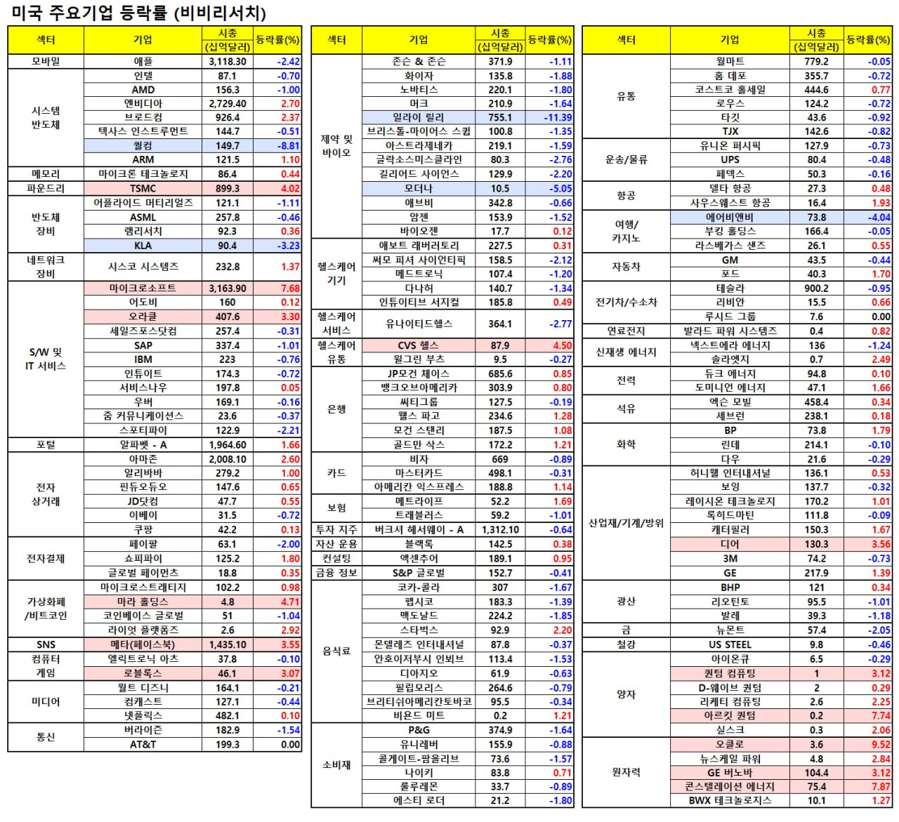 - 그 외 AMD(-0.72%), 인텔(-0.60%)은 장 마감 직전 하락 전환.