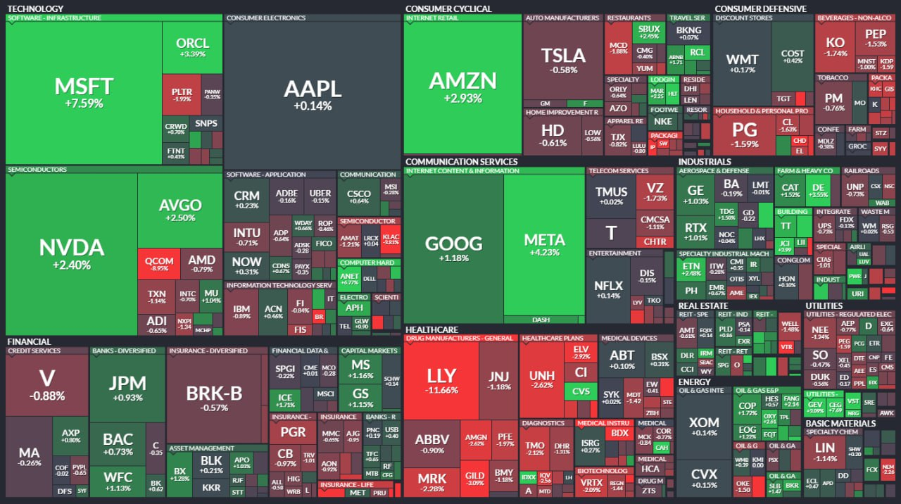 - 📉헬스케어는 부진했는데 일라이릴리가 연간 가이던스를 축소한 후 -11.6% 하락한 영향과/