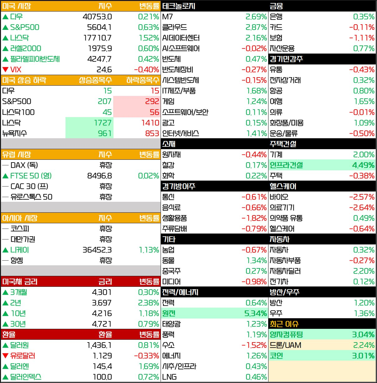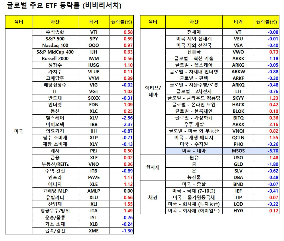 - 여기에 자본 지출 규모 증가 소식에 엔비디아(+2.47%)가 상승하는 등 반도체 업종도 강세.