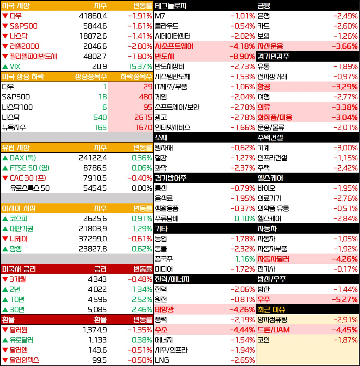 • 전 섹터 하락