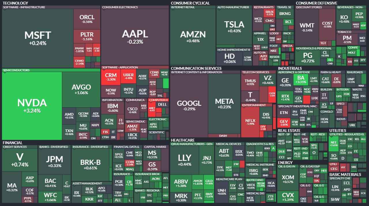 - 호실적을 발표한 엔비디아는 3.25% 상승했습니다.