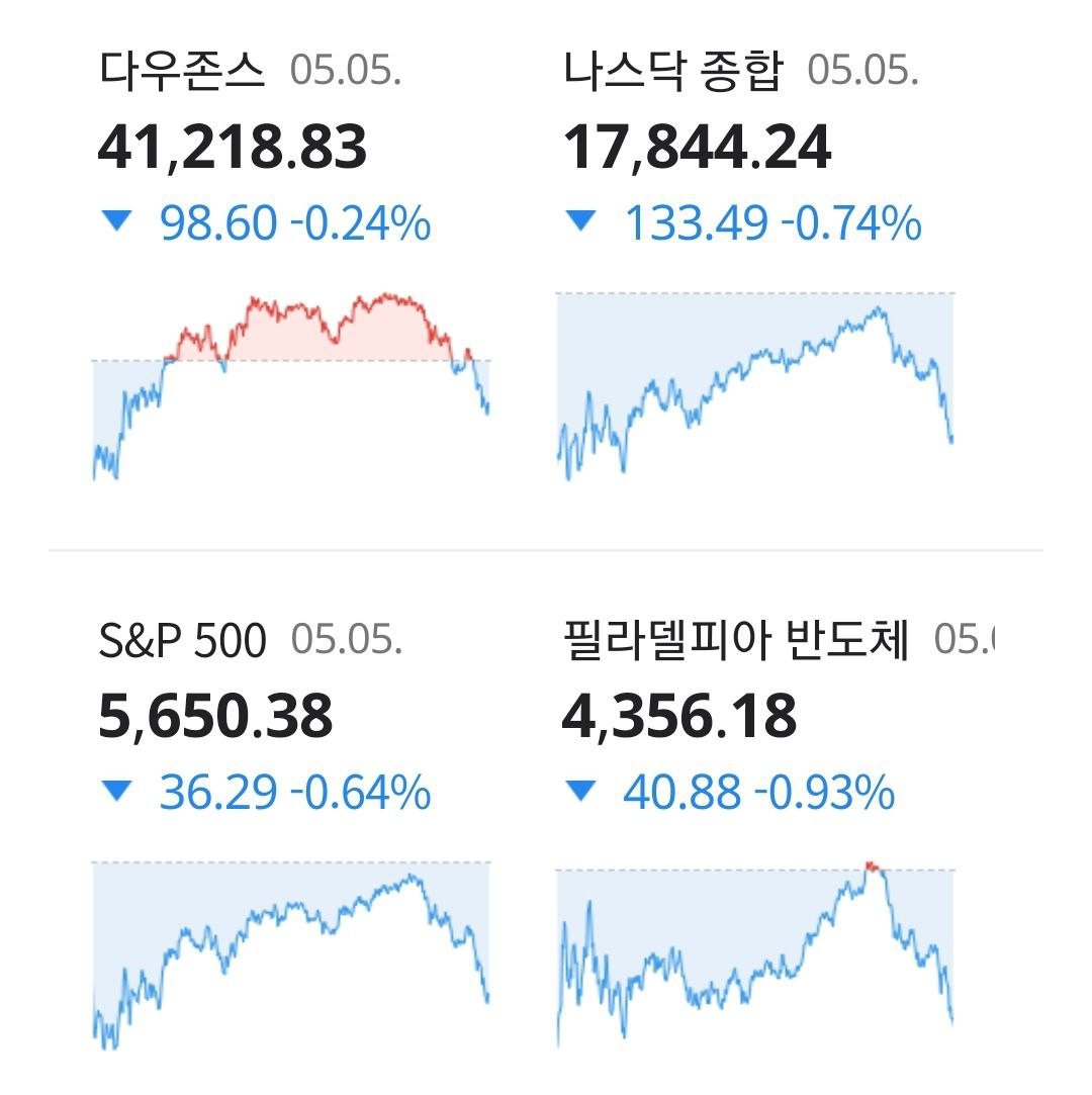 - 05/06 미 증시, 견조한 지표와 관세 협상 기대에 낙폭 일부 축소 후 재차 매물 출회