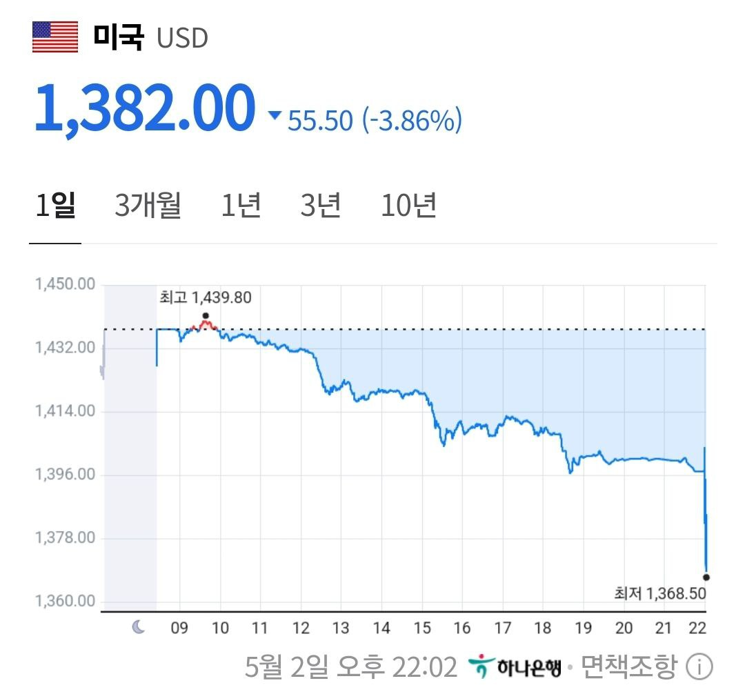 지난 주말 이 후 대만 환율 급락 중