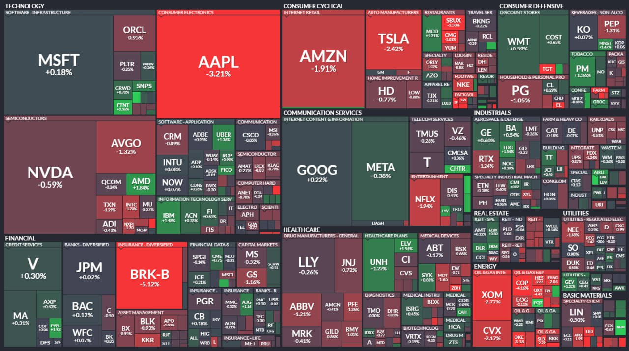 - 버크셔헤서웨이(-5.12%)는 워런 버핏이 사임하자 하락.
