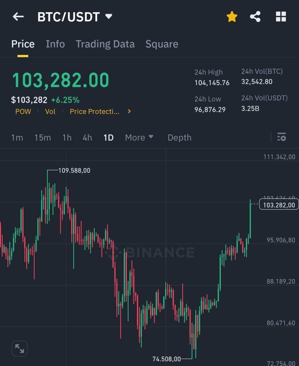 • 바이낸스 USDT 마켓 기준 BTC는 104,000.91달러에 거래되고 있다.