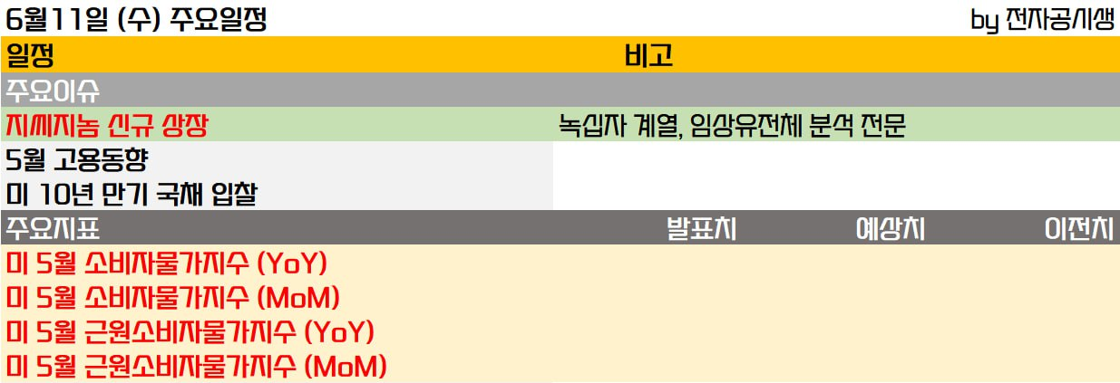 - 시장은 소비자물가지수에 관심이 이동되며 미국 노동부는 11일 오전 8시 30분 지난달 소비자물가지수 발표 예정
