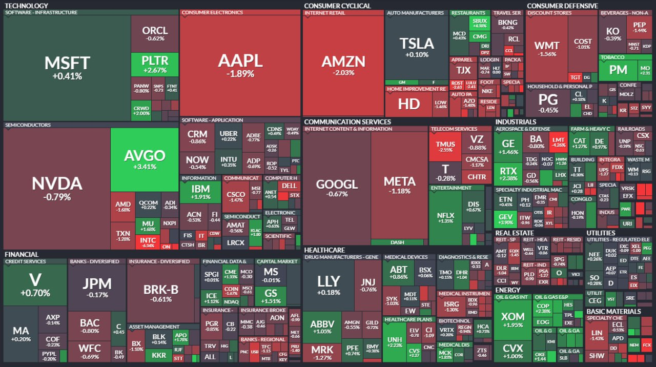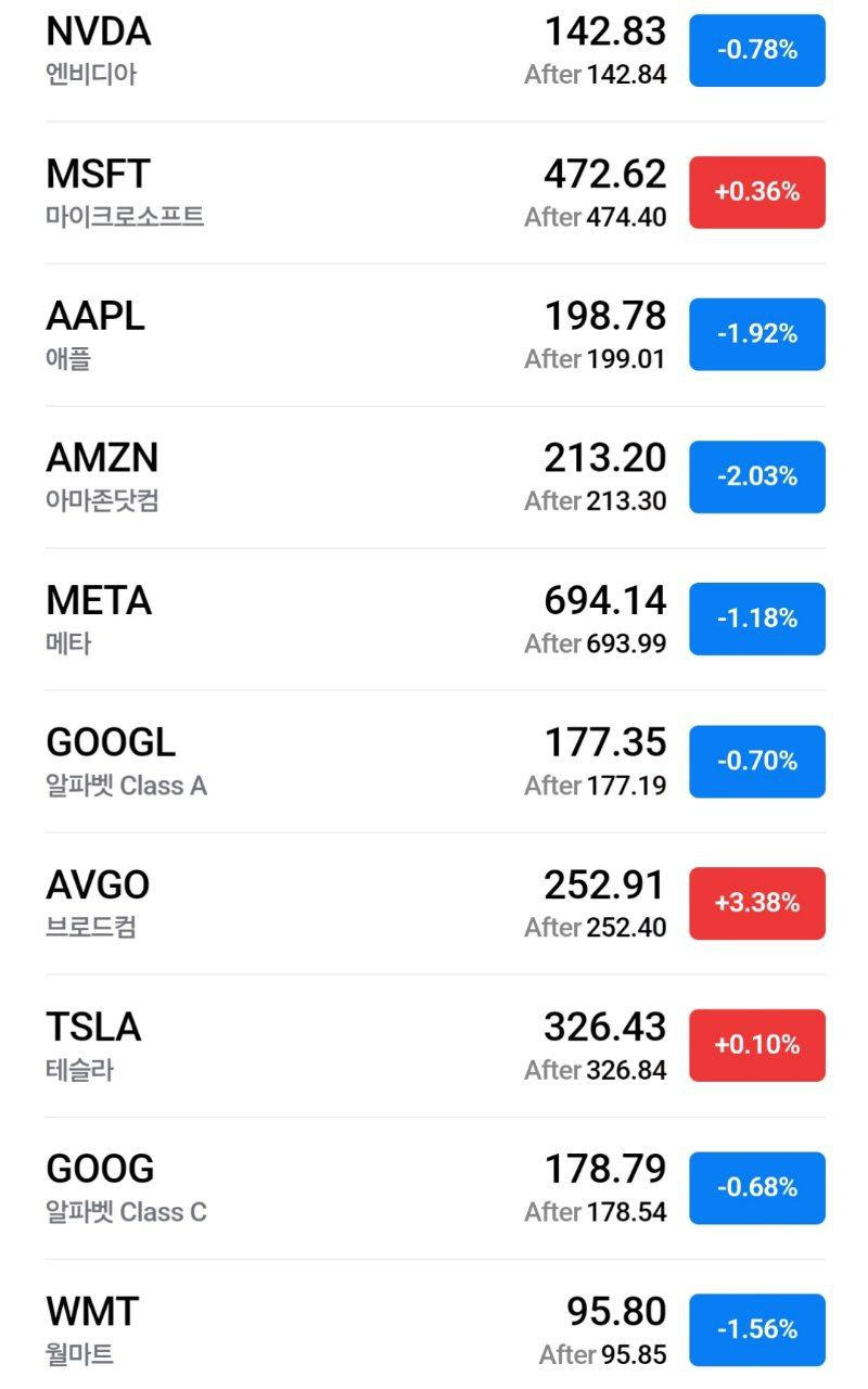 - *특징 종목: 팔란티어, 브로드컴 상승 Vs. 애플, 아마존 하락