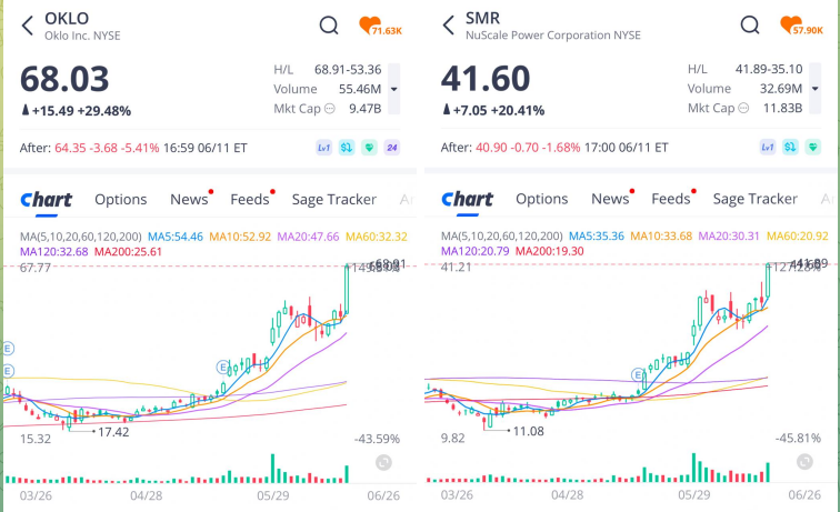 - 탈렌 에너지 $TLN 의 아마존 AWS 데이터 센터 원자력 에너지 공급 확대 계약, 오클로 $OKLO 의 미 공군기지 원자력 공급 계약 수주 소식에 원전 관련주 강세