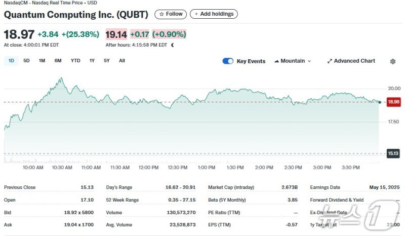 - 젠슨 황 엔비디아 최고경영자 “양자컴퓨터가 변곡점을 맞고 있다”고 말하자 대표적 양자컴 주인 퀀텀 컴퓨팅이 약 25% 상승하는 등 양자컴퓨터 주가 일제히 폭등