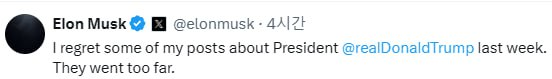 · 결국 트럼프에 꼬리 내린 머스크…"내가 너무 지나쳤다"