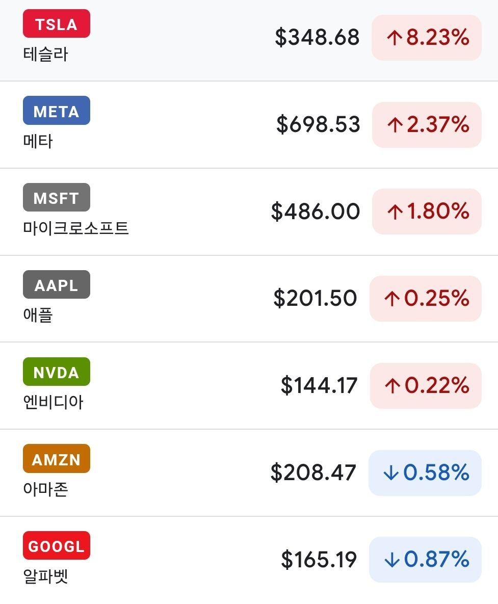 *특징 종목: 테슬라 급등 Vs. 노보노디스크, 알파벳 하락