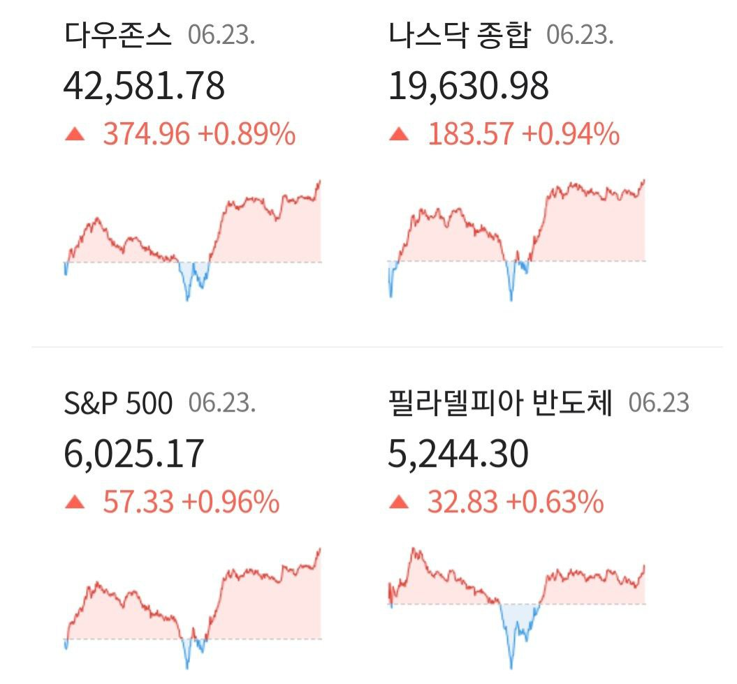 - 06/24 미 증시, 이란-트럼프 확전 의지 없음을 시사하자 상승 확대