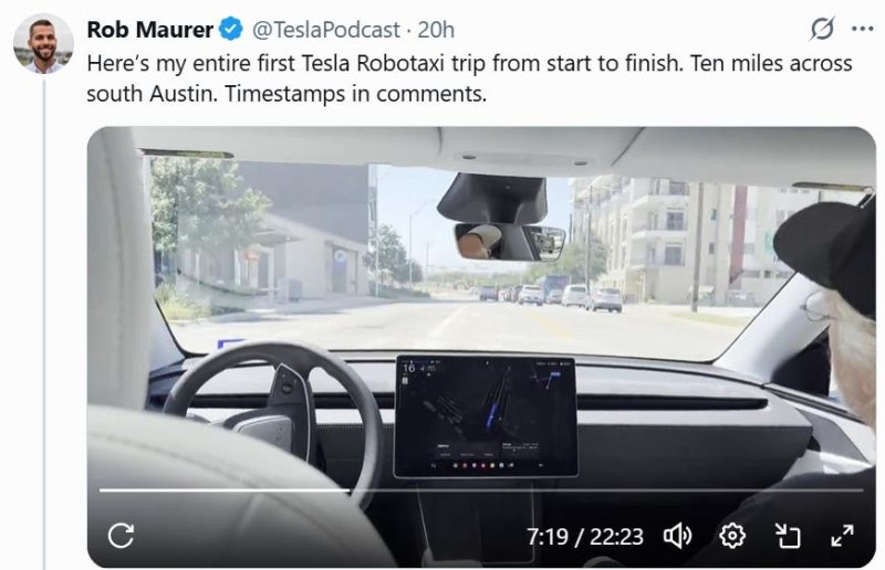- 일론 머스크 X 를 통해 로보택시 서비스가 일요일 오후부터 $4.20의 고정 요금으로 시작된다고 발표했고 테슬라 모델Y 차량이 운전자 없이 오스틴 시내를 주행하는 모습이 포착됨