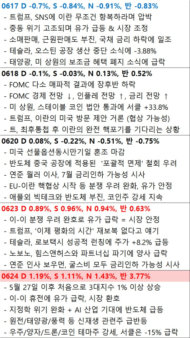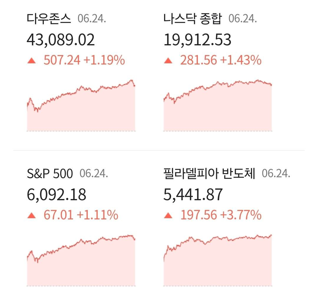 - 06/25 미 증시, 중동 안정 속 파월의 비둘기파적인 발언에 상승 확대