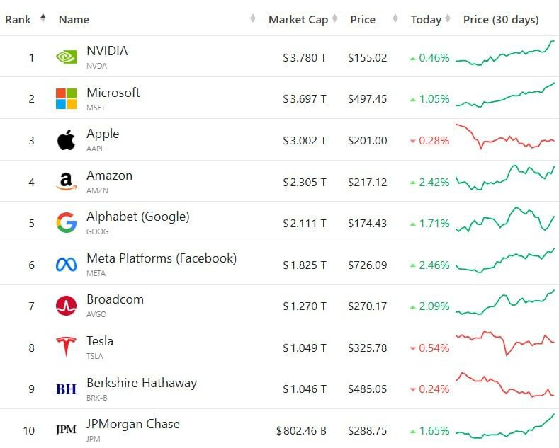 - 시가총액은 3조7630억달러(약 5000조원)로 늘어나, 마이크로소프트(3조6580억달러)를 제치고 시총 순위 1위에 올랐다.