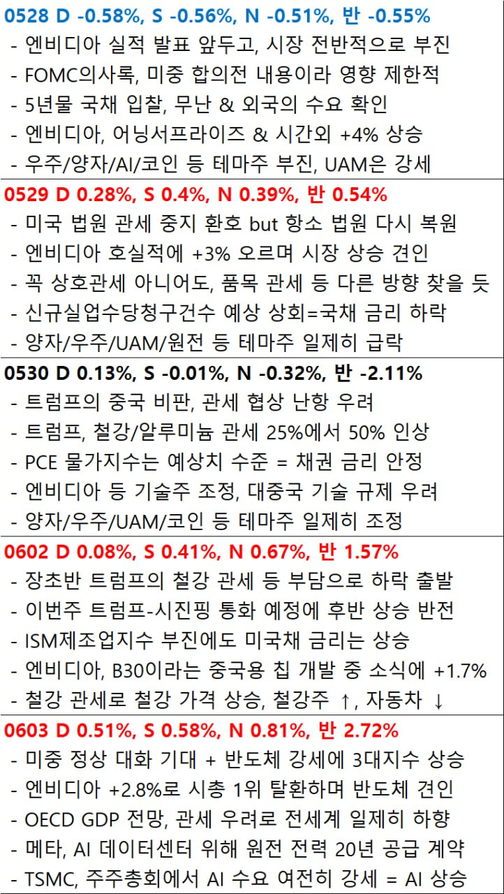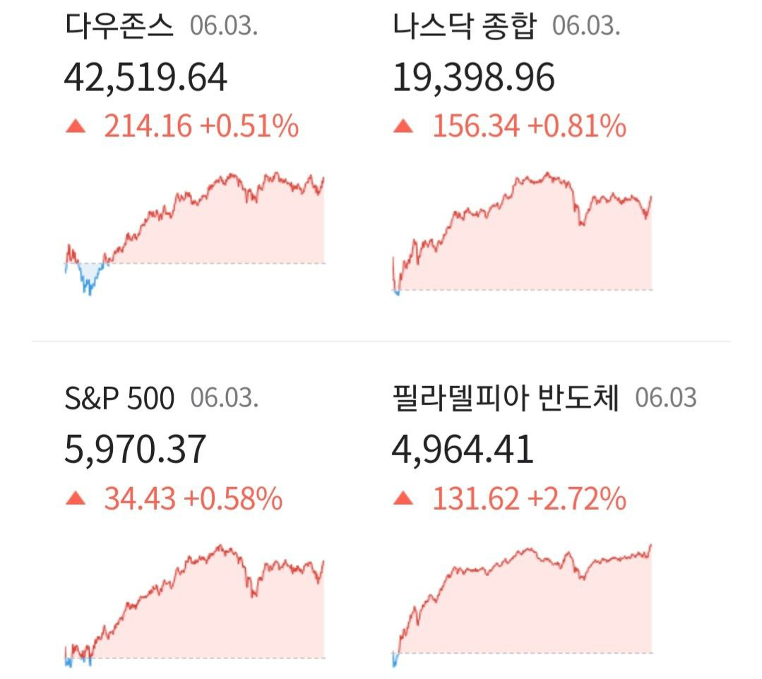 - 06/04 미 증시, 엔비디아 등 반도체 업종이 상승 주도한 가운데 관세 이슈에 변동성 여전