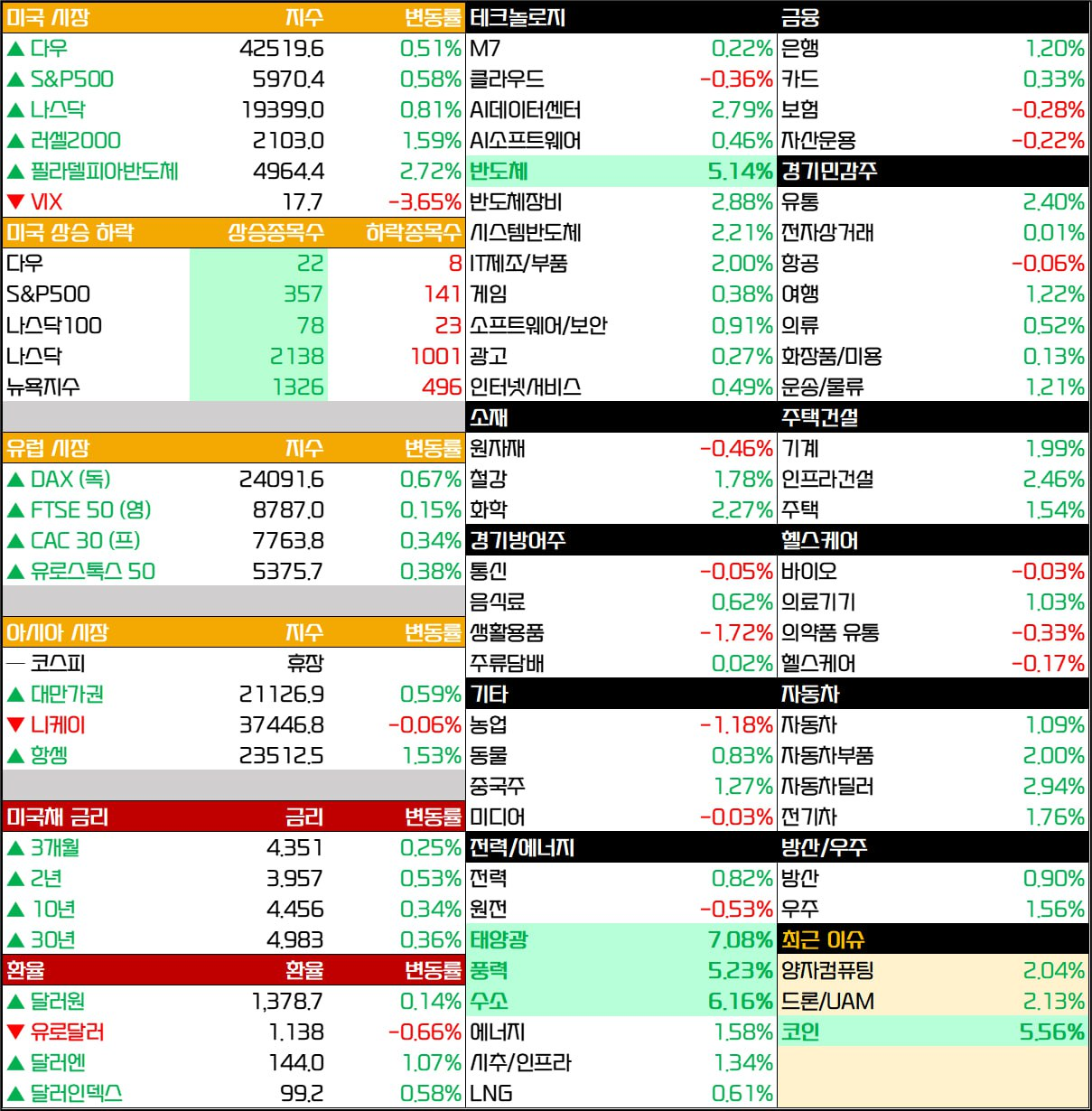 - 브로드컴(+3.27%), 마이크론(+4.15%), AMD(+2.34%) 등도 강세.