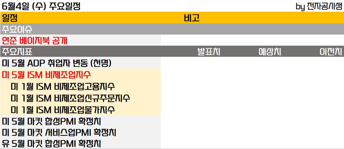 ADP일자리 보고서와 ISM 서비스 데이터 등이 발표됩니다. 캐나다의 금리 결정(인하 예정)이 있고 연준에서는 베이지 북을 공개합니다