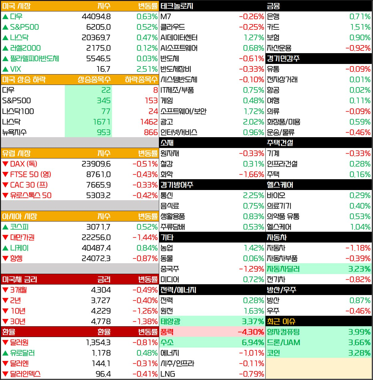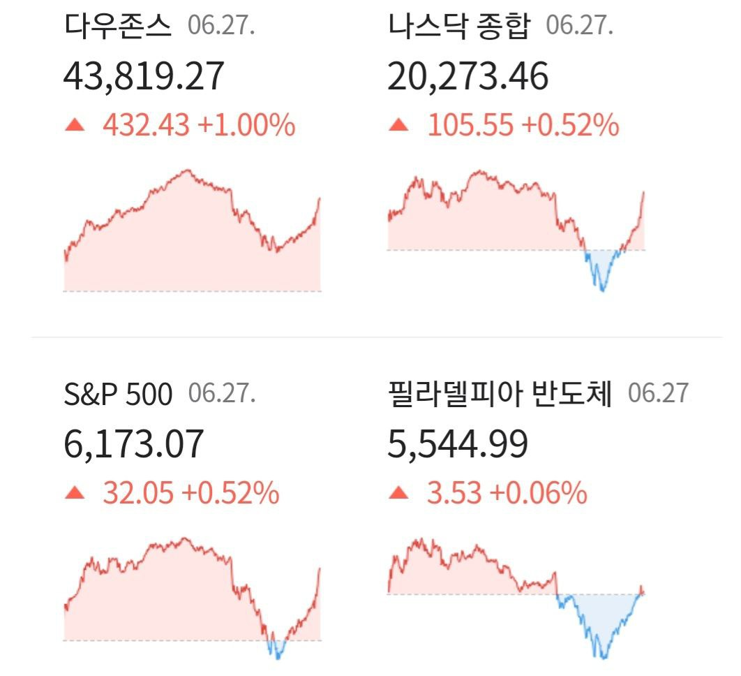 - 다우지수: +0.63% (44,094.77pt)