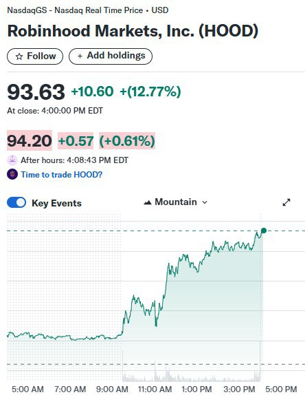 • 로빈후드 $HOOD 토큰화된 미국 주식 및 ETF 를 유럽에 출시한다고 발표하며 12.7% 상승