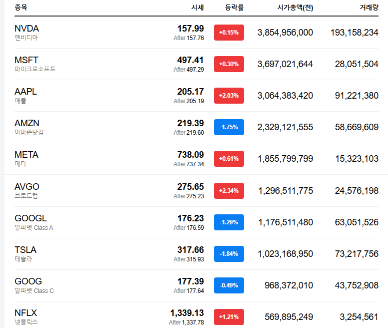 - 애플 등 대형 기술주
