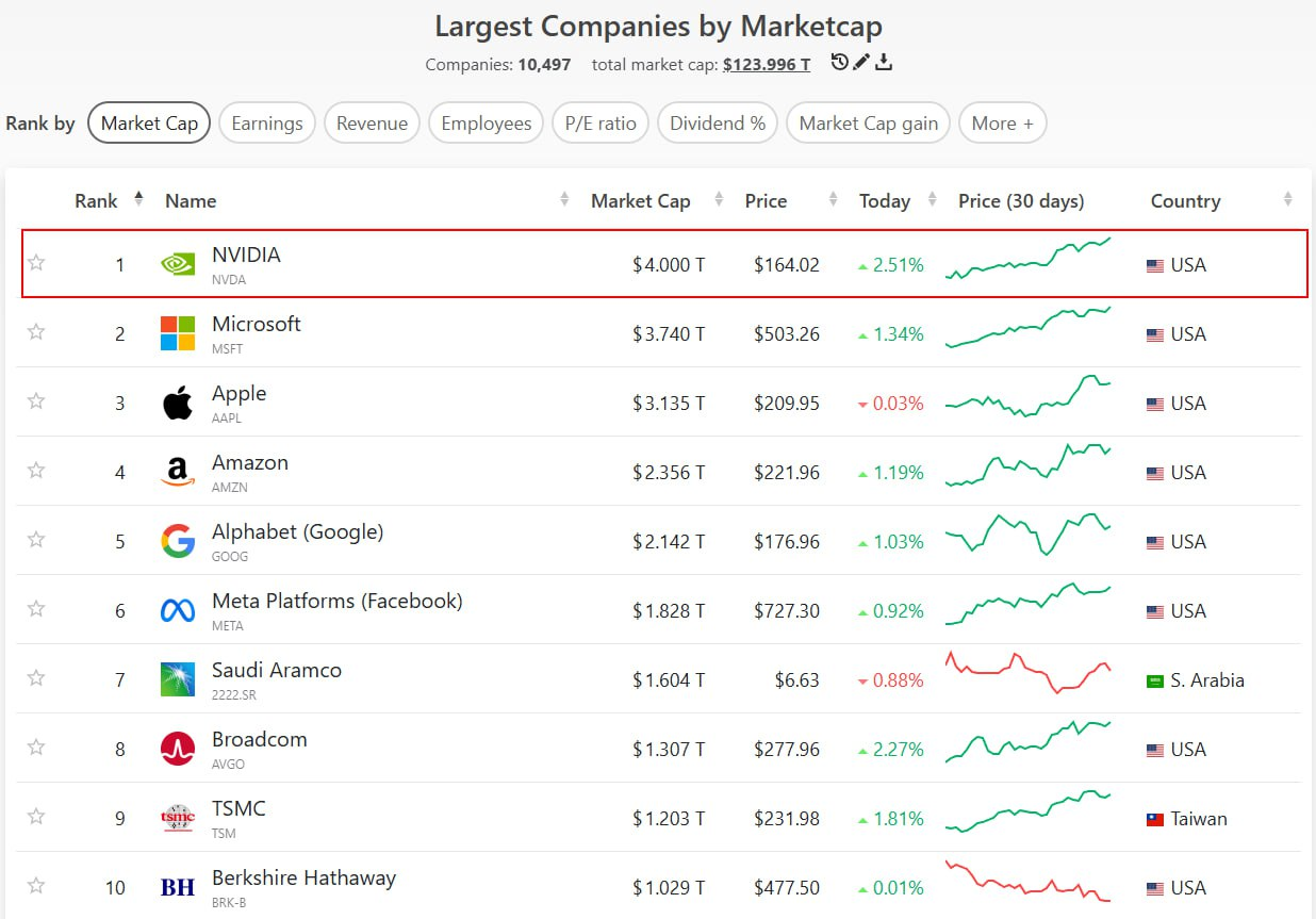 - Nvidia 시가총액 4조 달러 돌파.