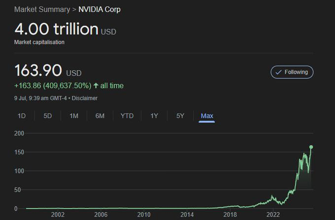 - 엔비디아, 장중 시총 4조 달러 이정표…나스닥 최고치 마감, 인류 기업 역사상 최초