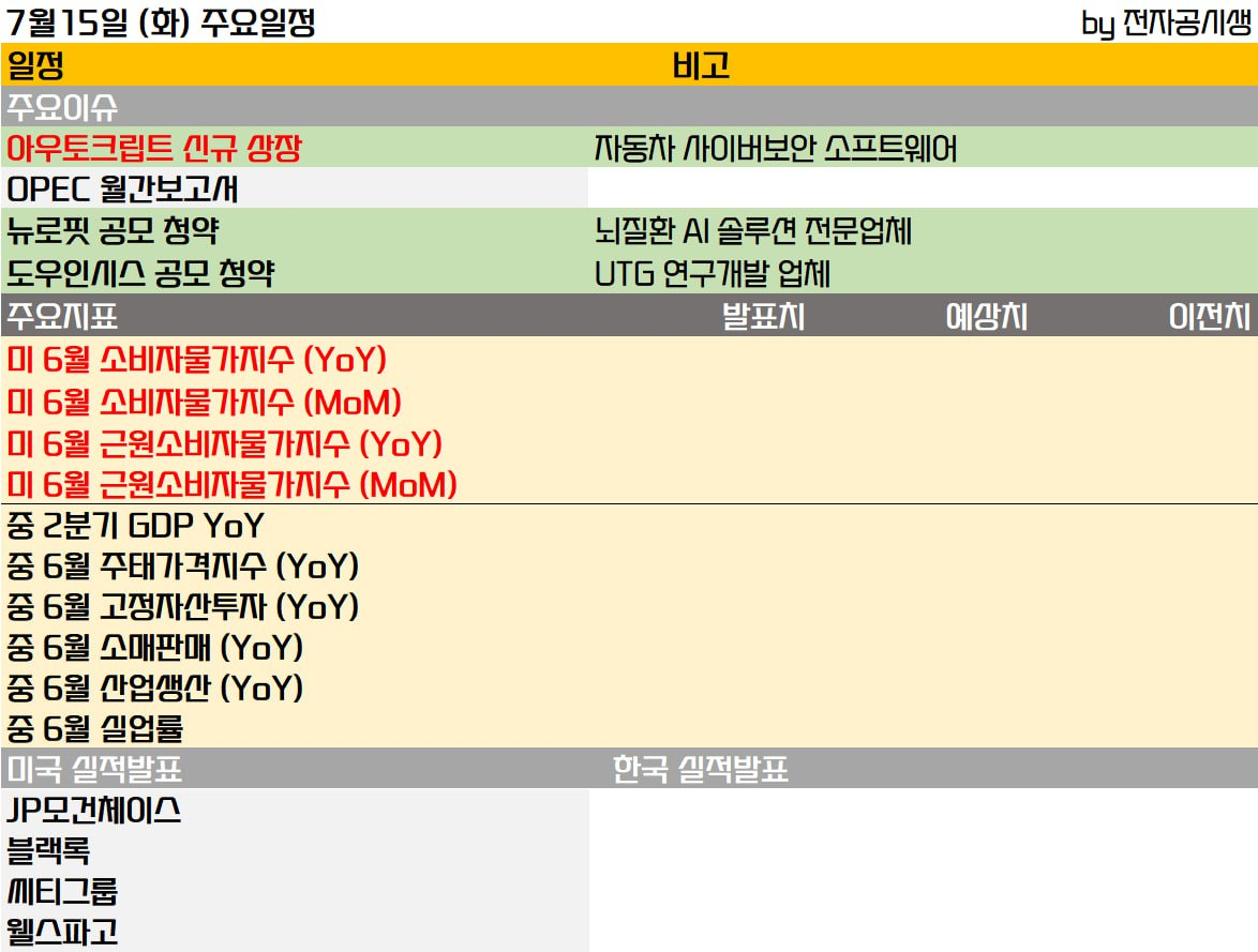 • 화요일부터 발표될 기업들의 2분기 실적과 경제지표에 시장이 반응할 것으로 관측됨.