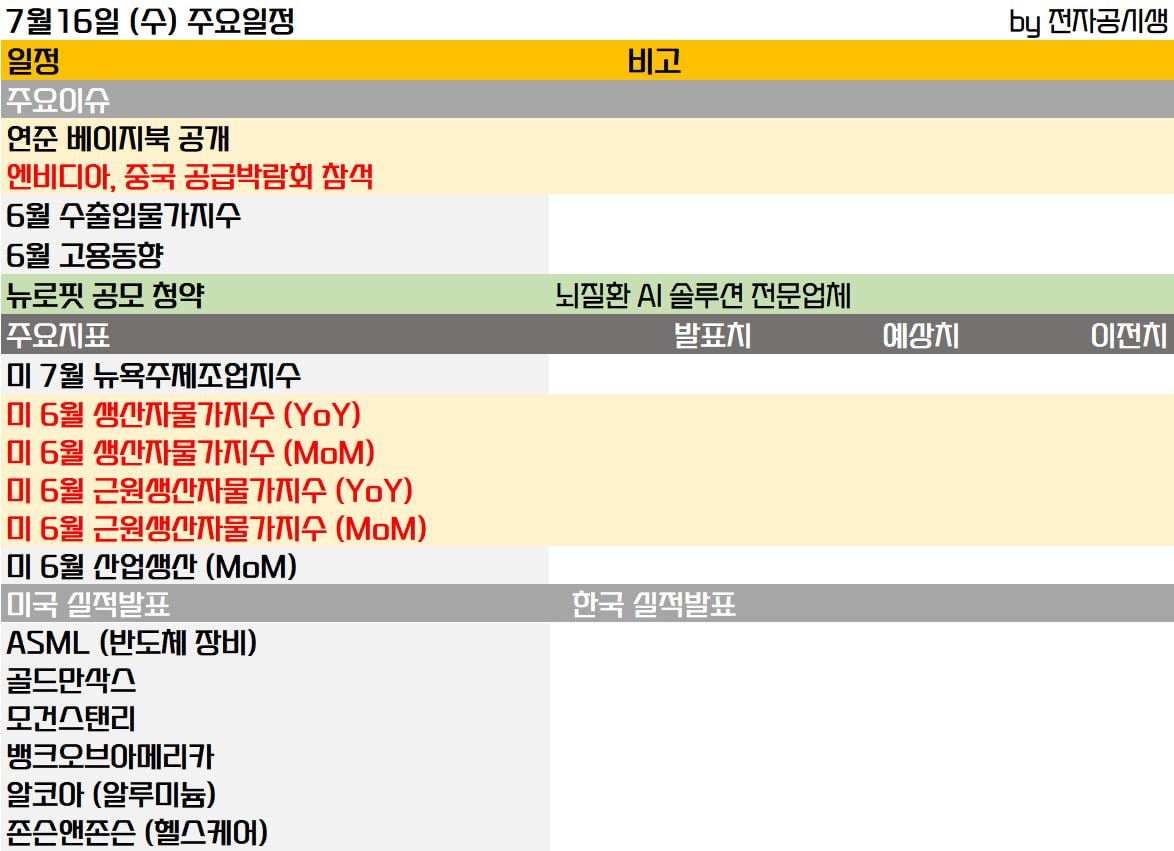 - 이에 따라 시장은 기업들이 기대치를 상회할 수 있을지, 관세 영향이 하반기 실적에 어떻게 반영될지를 주목하고 있음.