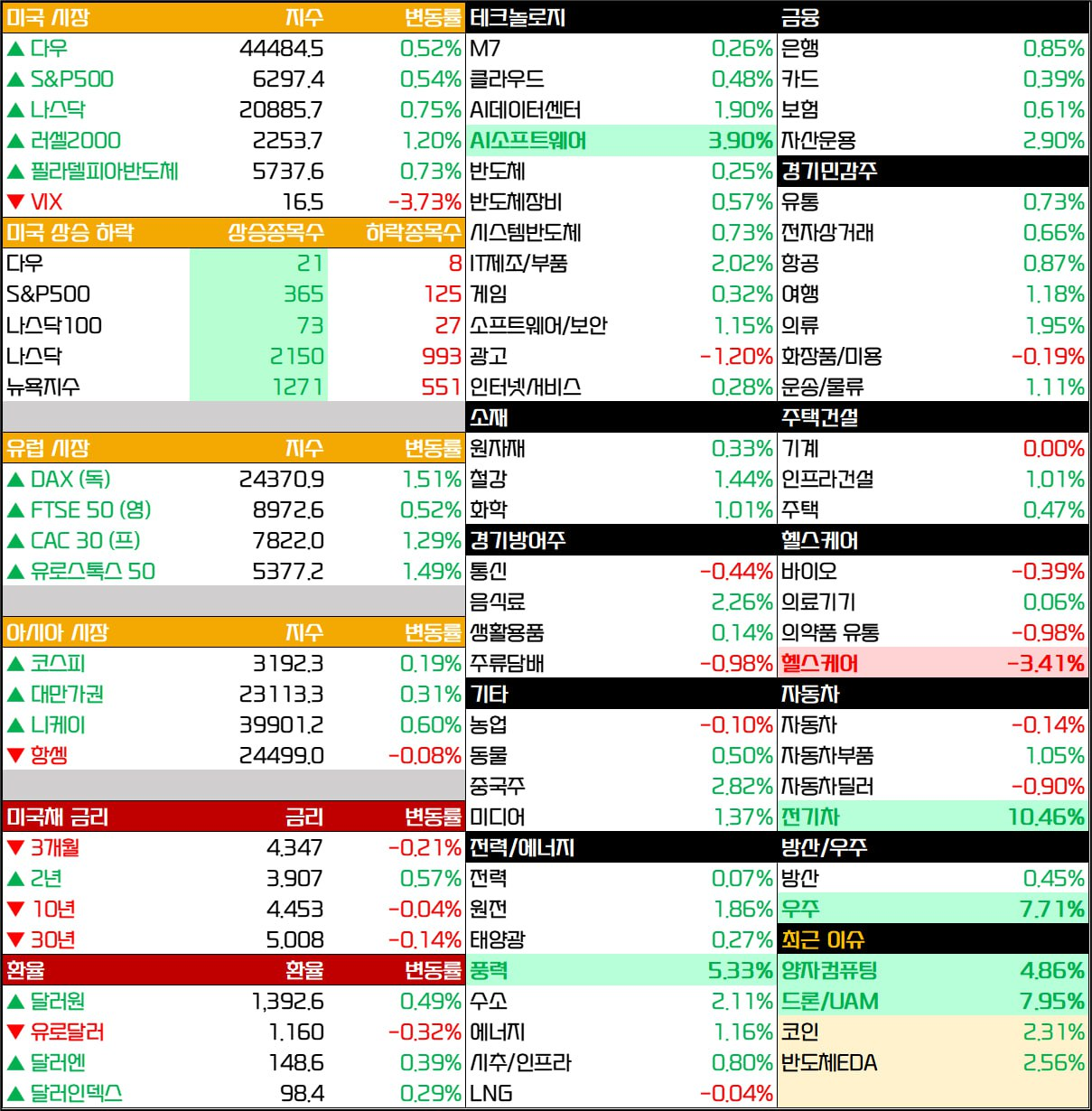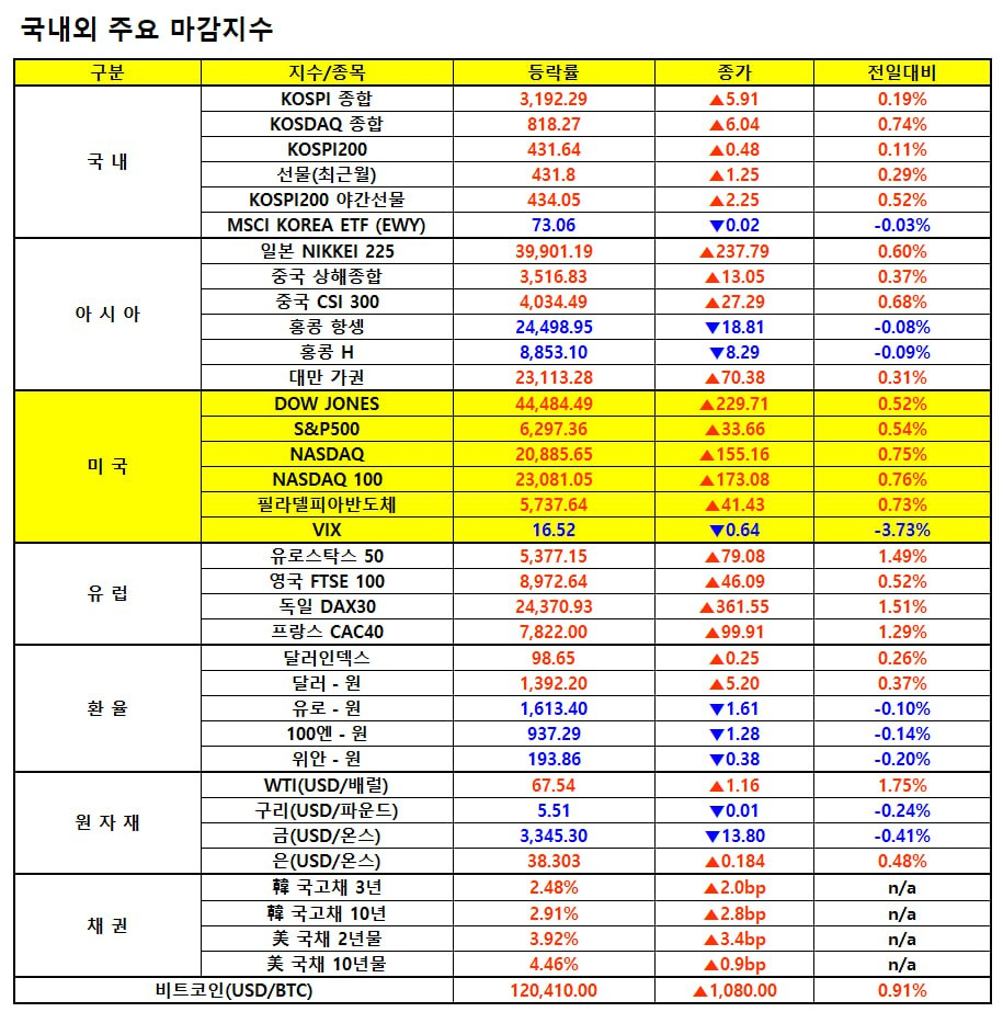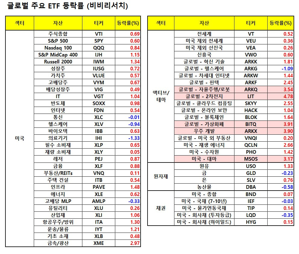- - 러셀2000지수: +1.20% (테마주·중소형주 강세 반영)