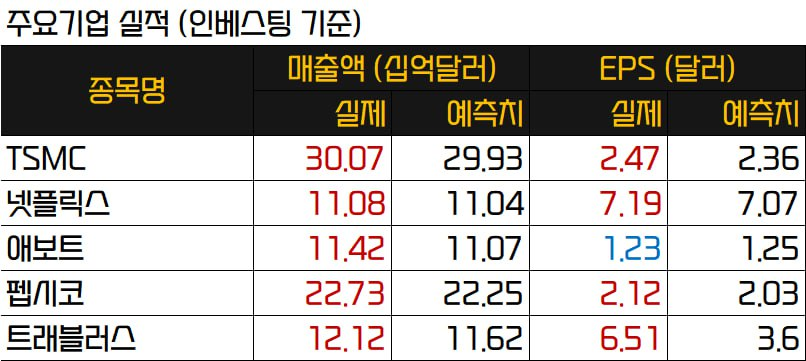 - TSMC가 사상 최대 실적을 발표하며 반도체 업종의 강세를 주도한 점도 시장의 강세 요인으로 작용함.