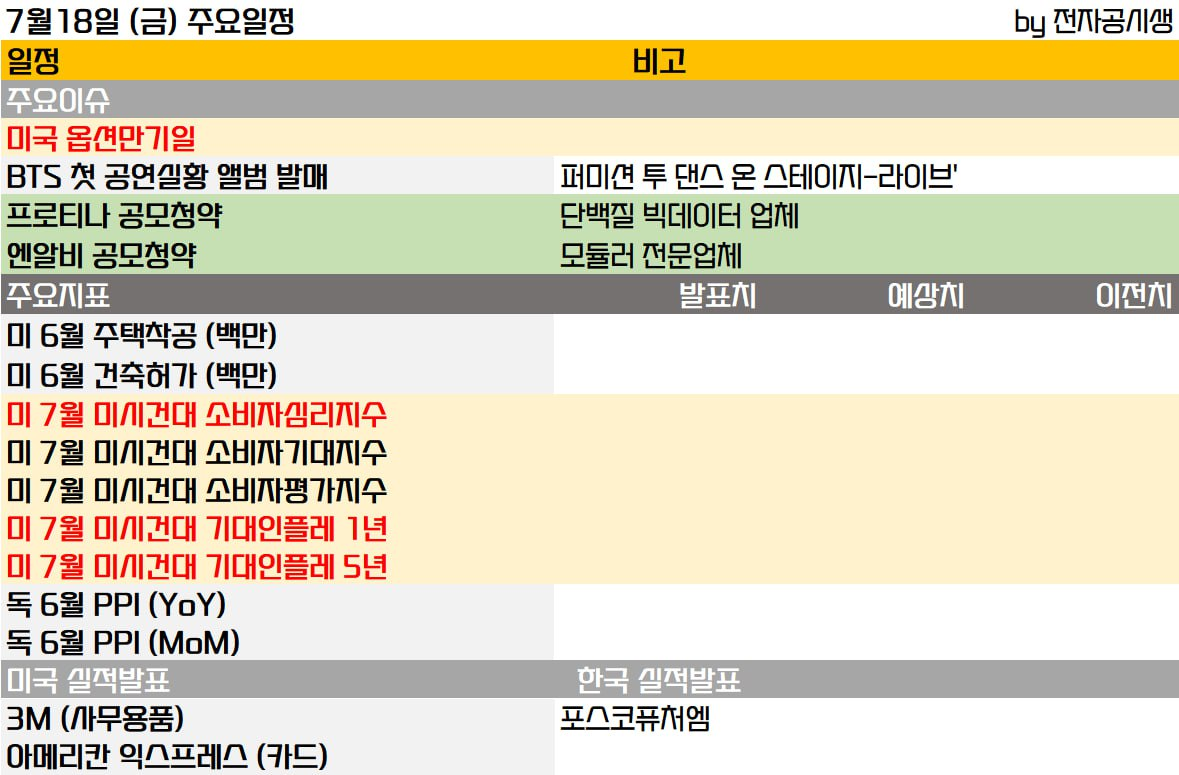 미시간대 소비 심리 조사가 발표되고 건축허가 및 주택 착공 건수가 예정되어 있습니다. 독일 PPI, 일본 CPI 등이 발표되며 연준 인사들은 미디어 블랙 아웃 기간에 들어갑니다