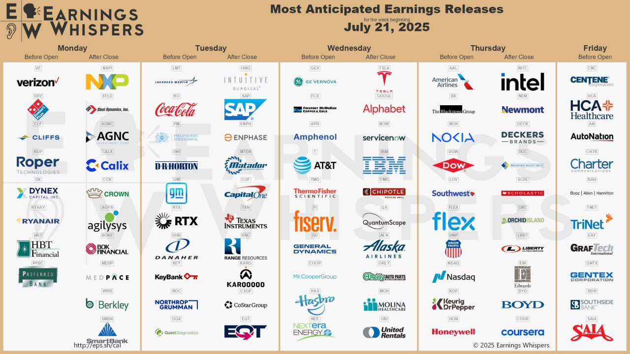 - 그 외 테슬라 (7/23 발표)는 관세 리스크 외에도 전세계 출하 감소, 마진 압박, 로보택시 진척도가 주요 체크포인트.