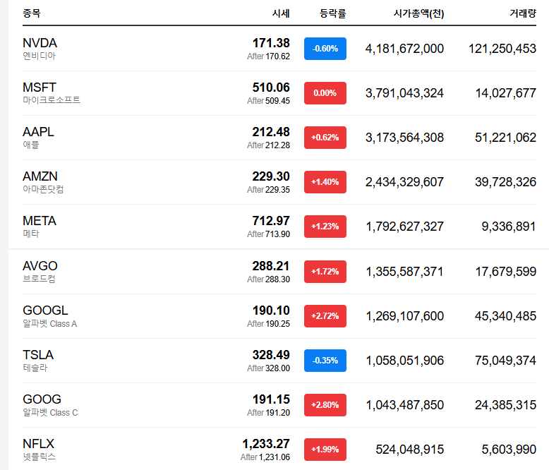 - 브로드컴(+1.72%)은 최근 AI 칩 성장성을 이유로 지난달 HSBC가 투자의견을 매수로 상향 조정한 후 지속적인 상승세를 이어가고 있음.