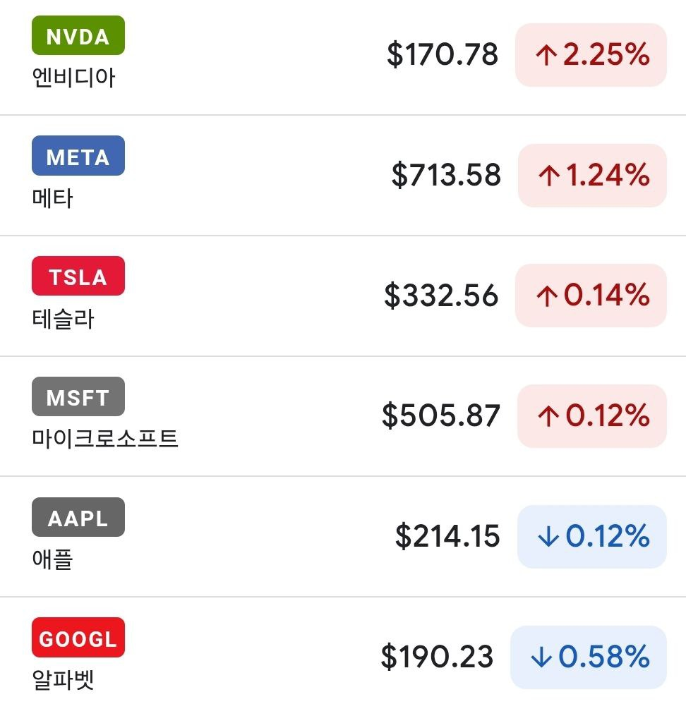 빅7 주가 변동