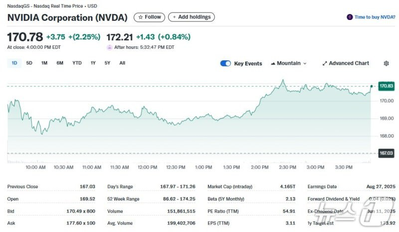 • 엔비디아(+2.25%)와 AMD(+2.54%)는 최근 보도된 H20 규제 완화등 미국의 AI 칩에 대한 수출 규제 완화 소식이 전해지며 상승.