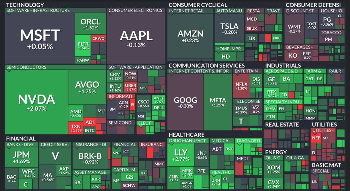 • S&P500 ▲ 6,358.95 (+0.8%)