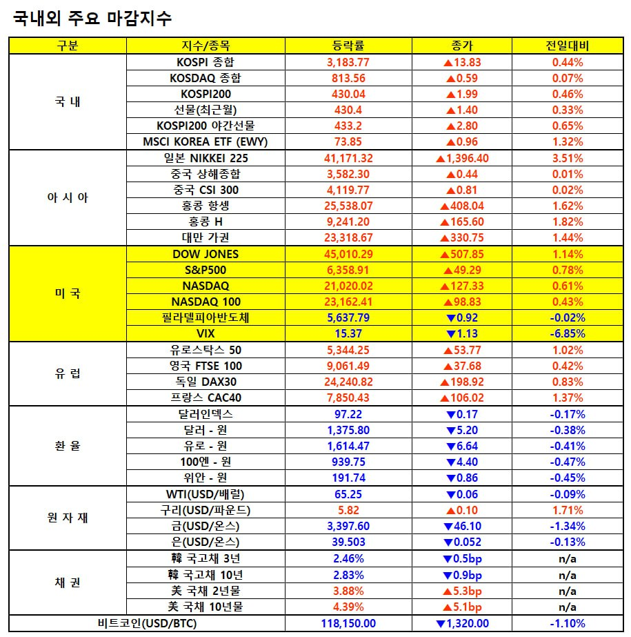• 시장 요약: 관세전쟁 트라우마 극복, 주요 지수 신고가 근접