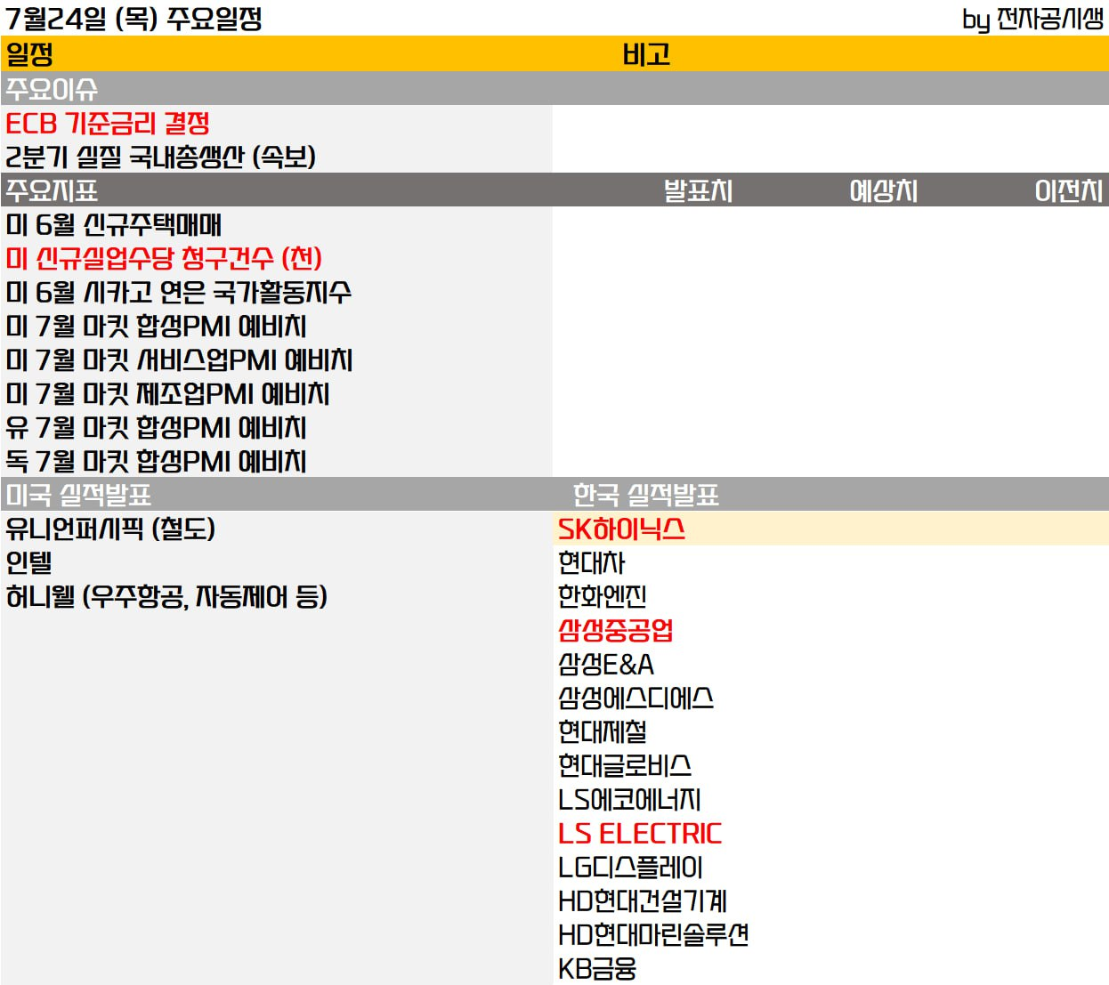 • 07/24 미 증시, 미-일에 이어 미-EU 협상과 실적 시즌에 대한 기대에 힘입어 상승